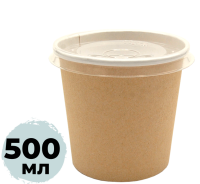 Картонная супница с пластик. крышкой 500мл крафт (Round Bowl 500)