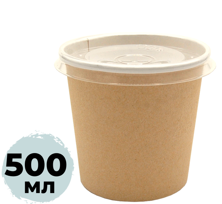Картонный контейнер с пластиковой крышкой 500мл(продается комплектом). Упаковка для горячих блюд, супа, каши, так же используется для мороженного, салата и пр.